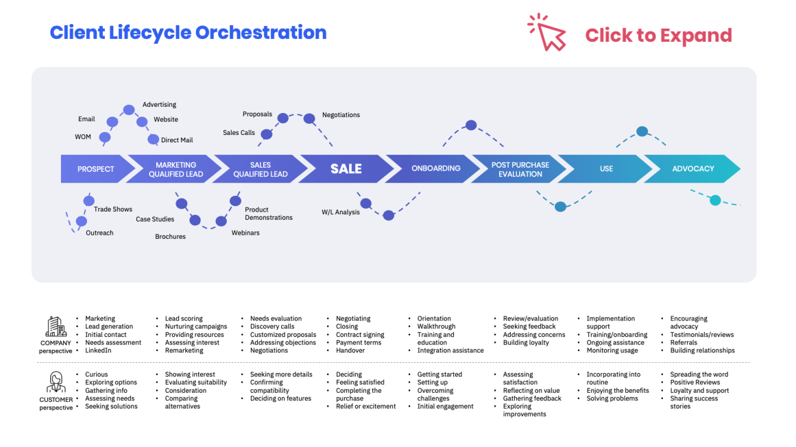 An approach to add to your planning process is to start with your client lifecycle and work backwards.